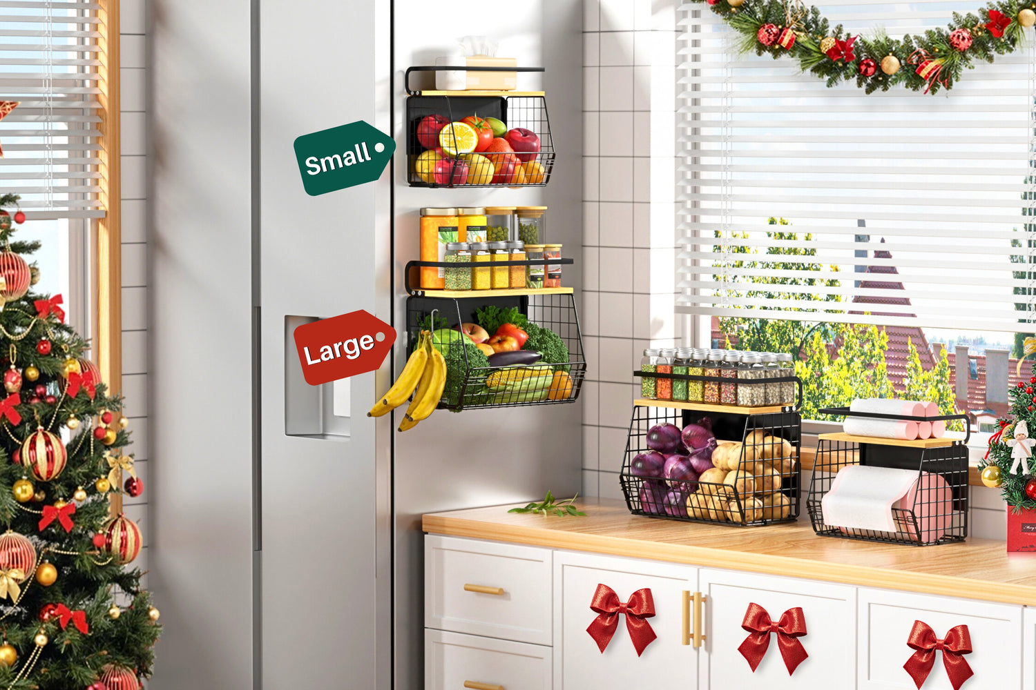 Magnetic Shelf for Refrigerator with Wood Lid, Fruit Potato & Onion Storage Bins, Pantry Organizers & Storage, Large Container Magnetic Spice Rack for Refrigerator, Kitchen Counter, Cabinet