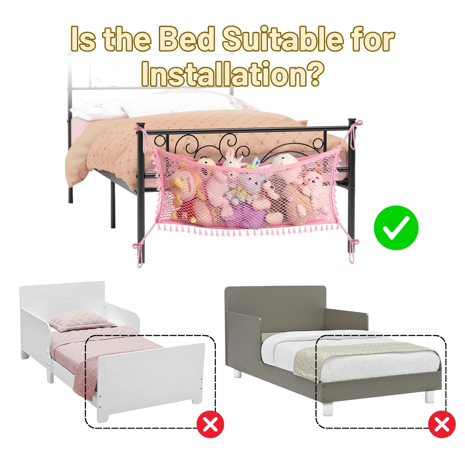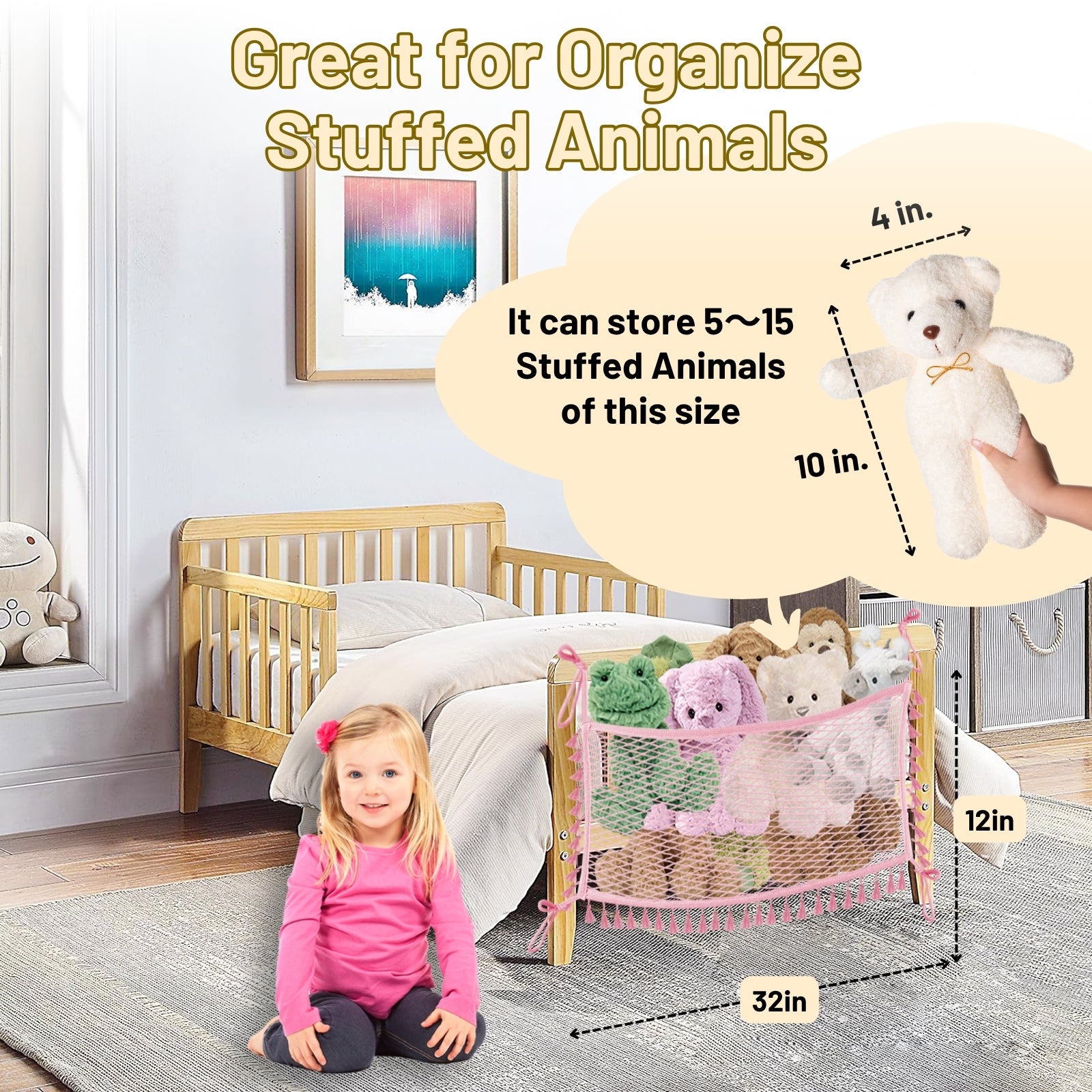 - 【Bedside Bliss】Specially crafted for bedside companions, this plush toy storage net ensures your child's favorite toys are within arm's reach, creating a cozy and delightful bedtime atmosphere. It transforms your child's bedtime routine, making it more enjoyable and comforting. The toy storage net measures 32 in ×12 in (please confirm your bed size before purchasing to ensure it is suitable).