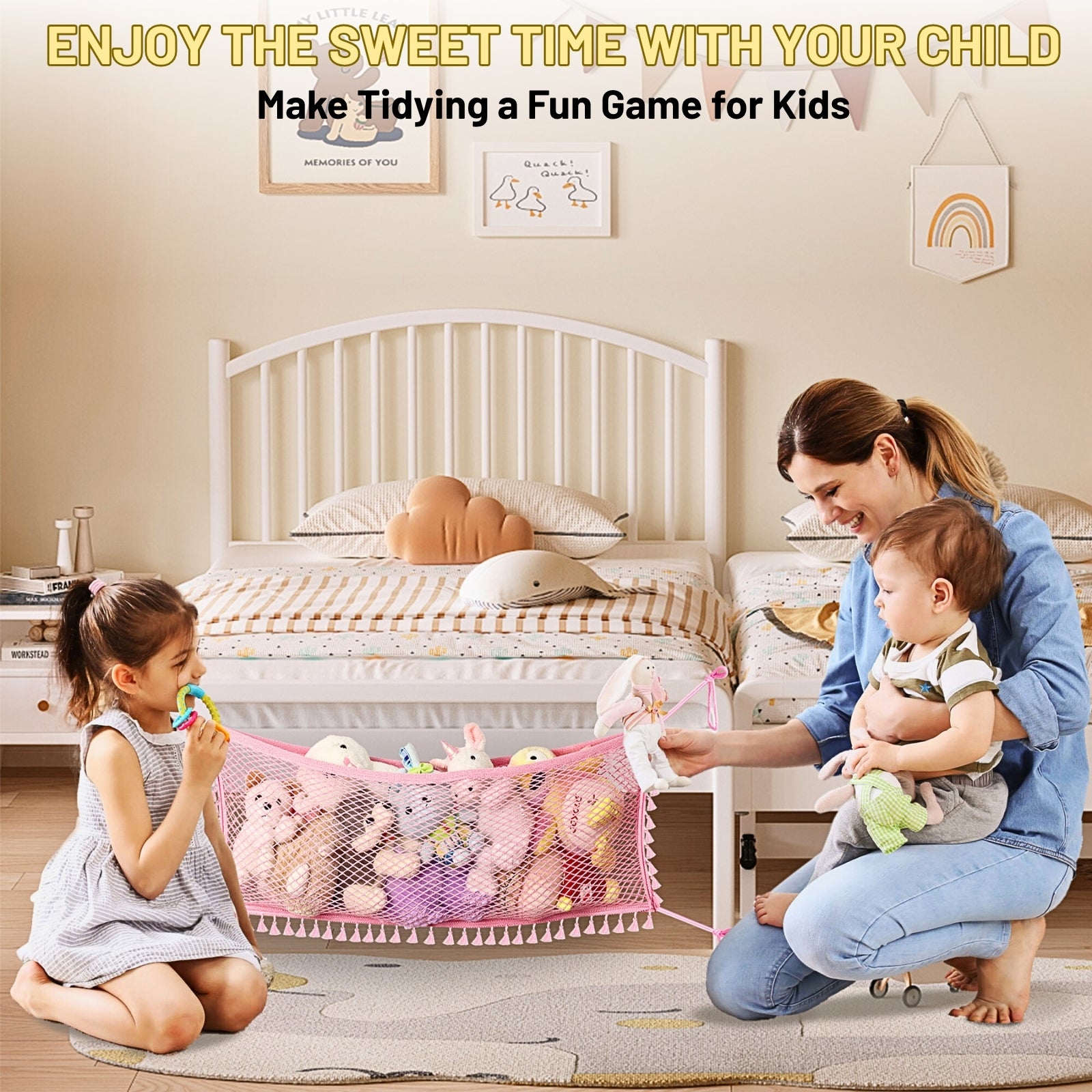 - 【Versatile Use】Beyond stuffed animals, this net is versatile enough to store other items like blankets, pillows, or even kids books. It adapts to your child's changing needs, making it a long-lasting and practical solution.