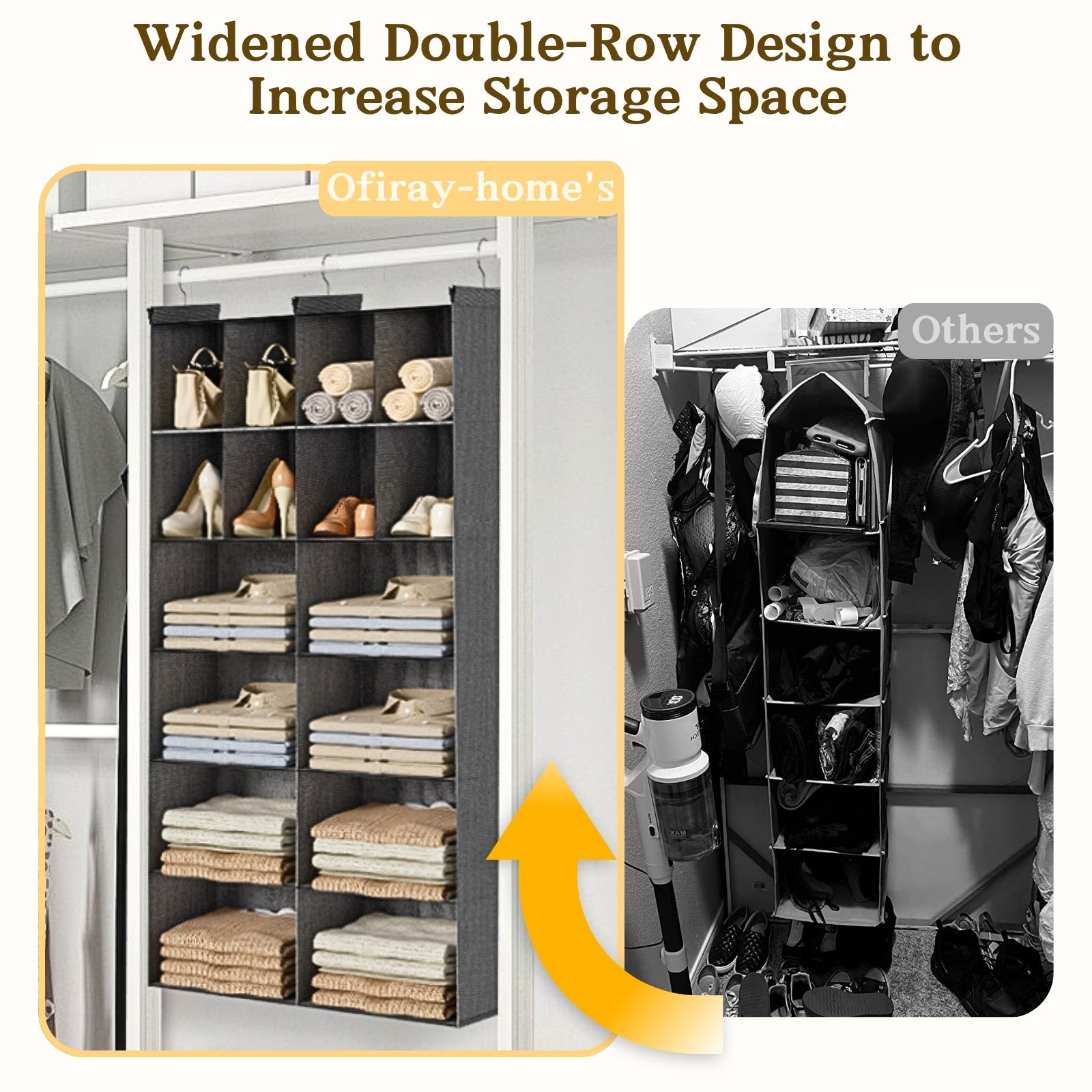 - 【6 Tiers & 16 Compartments, Extra Large for Closet】Ofiray-Home hanging closet organizer is the only 2-in-1 design with both large and small section pockets among all similar products. Its *16 compartments satisfy more classification needs compared to traditional 12 partitions. A must-have storage solution for small spaces, making items more organized and freeing up more space—an optimal choice in all closet organizer products.