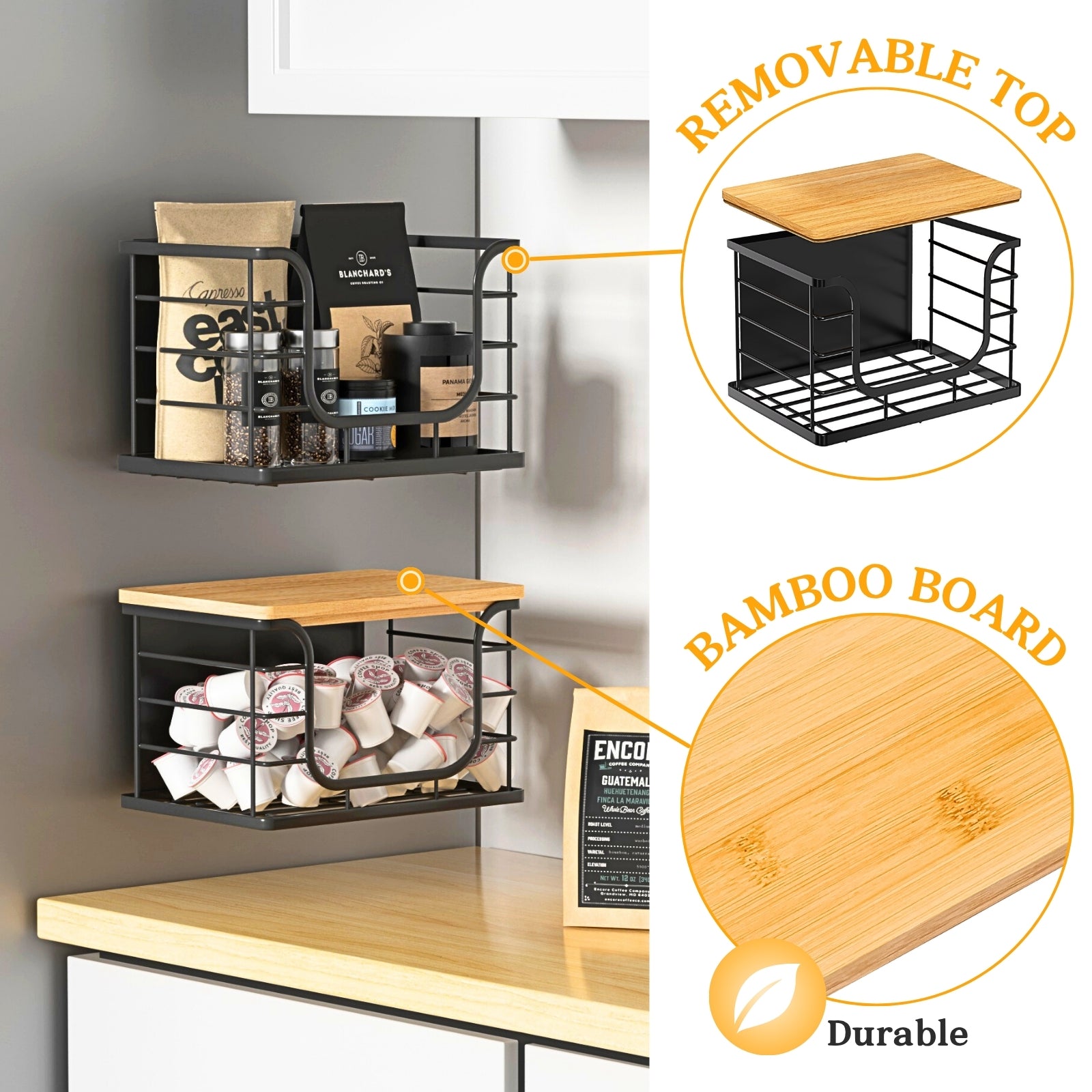 - 【2-Pack Magnetic Storage Bins for Trash Bags & More】This space-saving set includes 2 compact baskets with bamboo lids—perfect for storing trash bags, produce, plastic liners, and more. Easily stackable and magnetically attachable to metal surfaces for effortless organization.