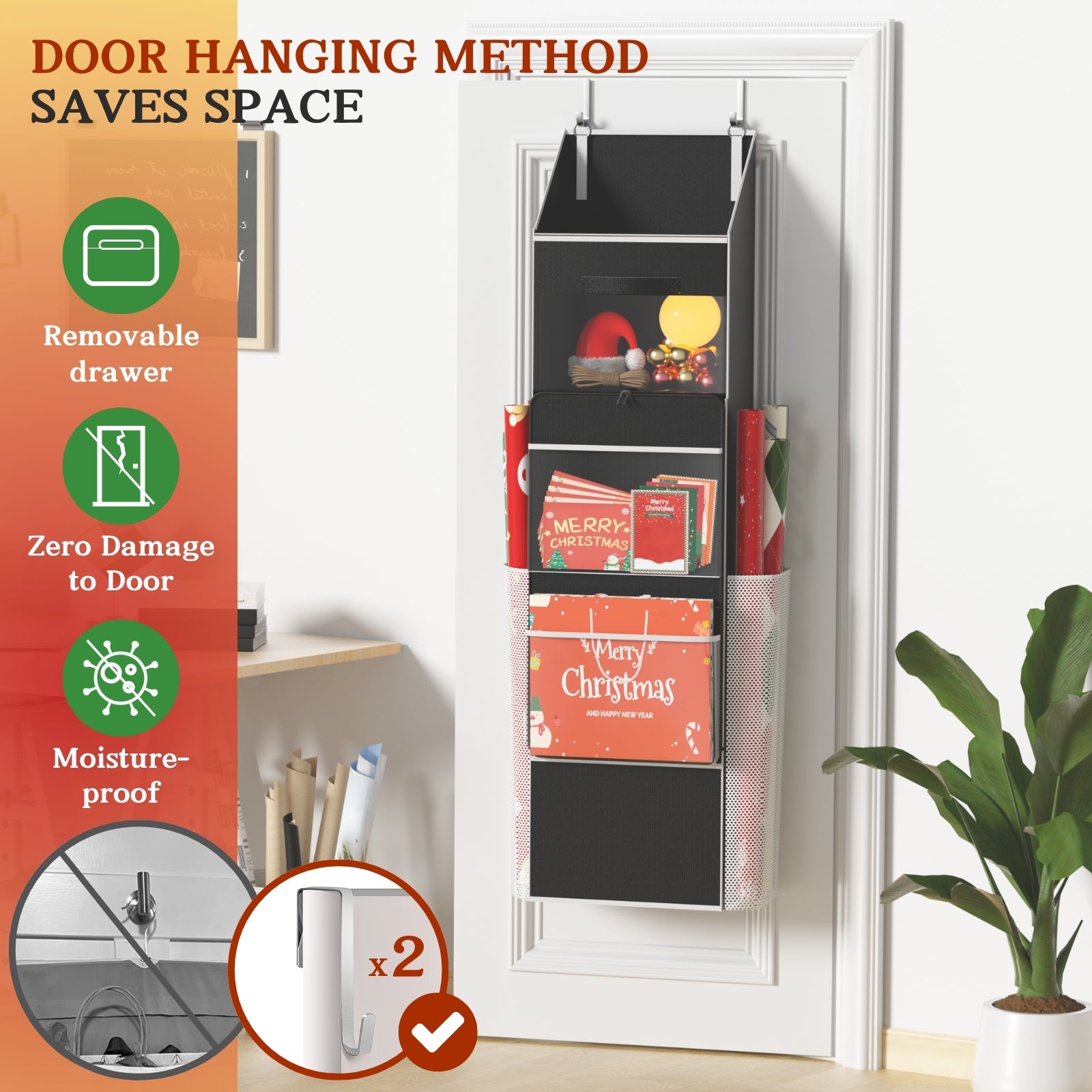- 【Space-Saving Gift Wrap Storage Solution】Tired of cluttered floors? Our gift wrapping organizer storage is designed to hang over the door, maximizing vertical space and keeping your wrapping paper, gift bags, and accessories neatly organized. This over the door organizer helps you store all your Christmas wrapping essentials without taking up valuable floor space.