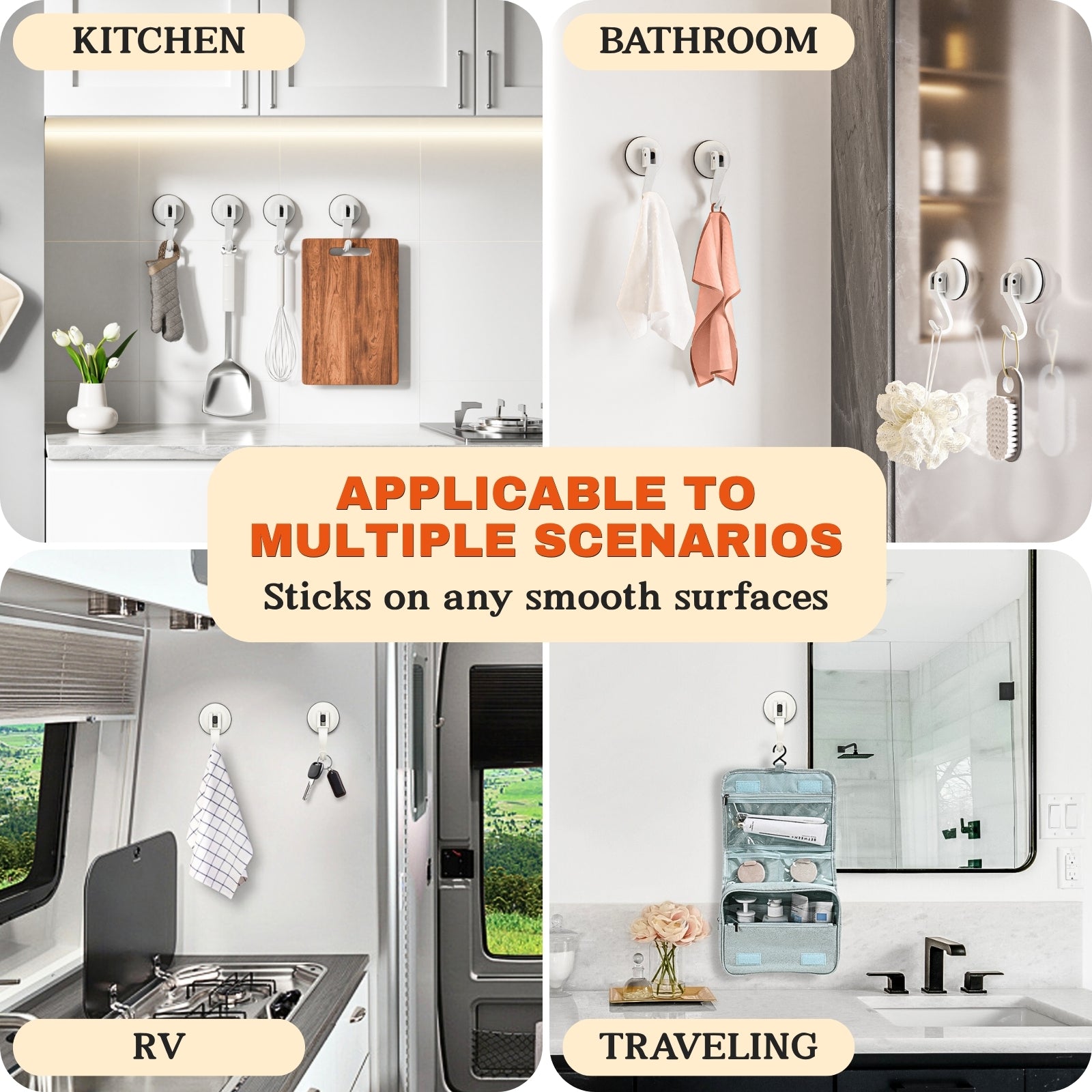 - 【Multi-Purpose Suction Cup Hooks for Door Wreaths】These versatile suction cup hooks can be used in bathrooms, kitchens, bedrooms, campers, buses, RVs, hotels, or dorm rooms, as well as for hanging wreaths/fresh garlands on front doors, Halloween and Christmas decorations