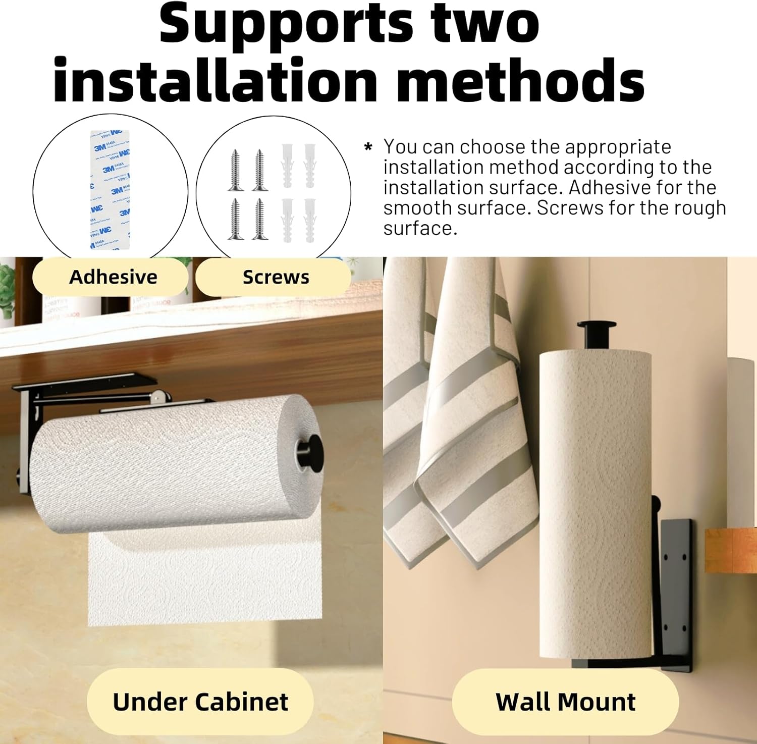 - 【OPTIMIZE SPACE WITH EFFORTLESS WALL MOUNTING】Free up valuable counter space and enjoy convenient access with our wall-mounted paper towel holder. It surpasses traditional countertop holders! Install it horizontally or vertically according to your needs, ensuring hassle-free usability.